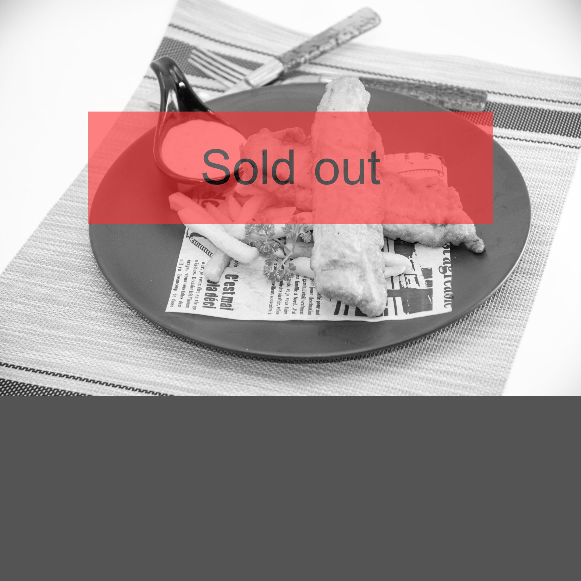 ปลากระพงขาว(หรือเปลี่ยนเป็นปลาดอลลี่) ชุบแป้งทอดสไตล์อังกฤษ เสิร์ฟพร้อมเฟรนฟาย ทานคู่กับทาทาร์ซอส